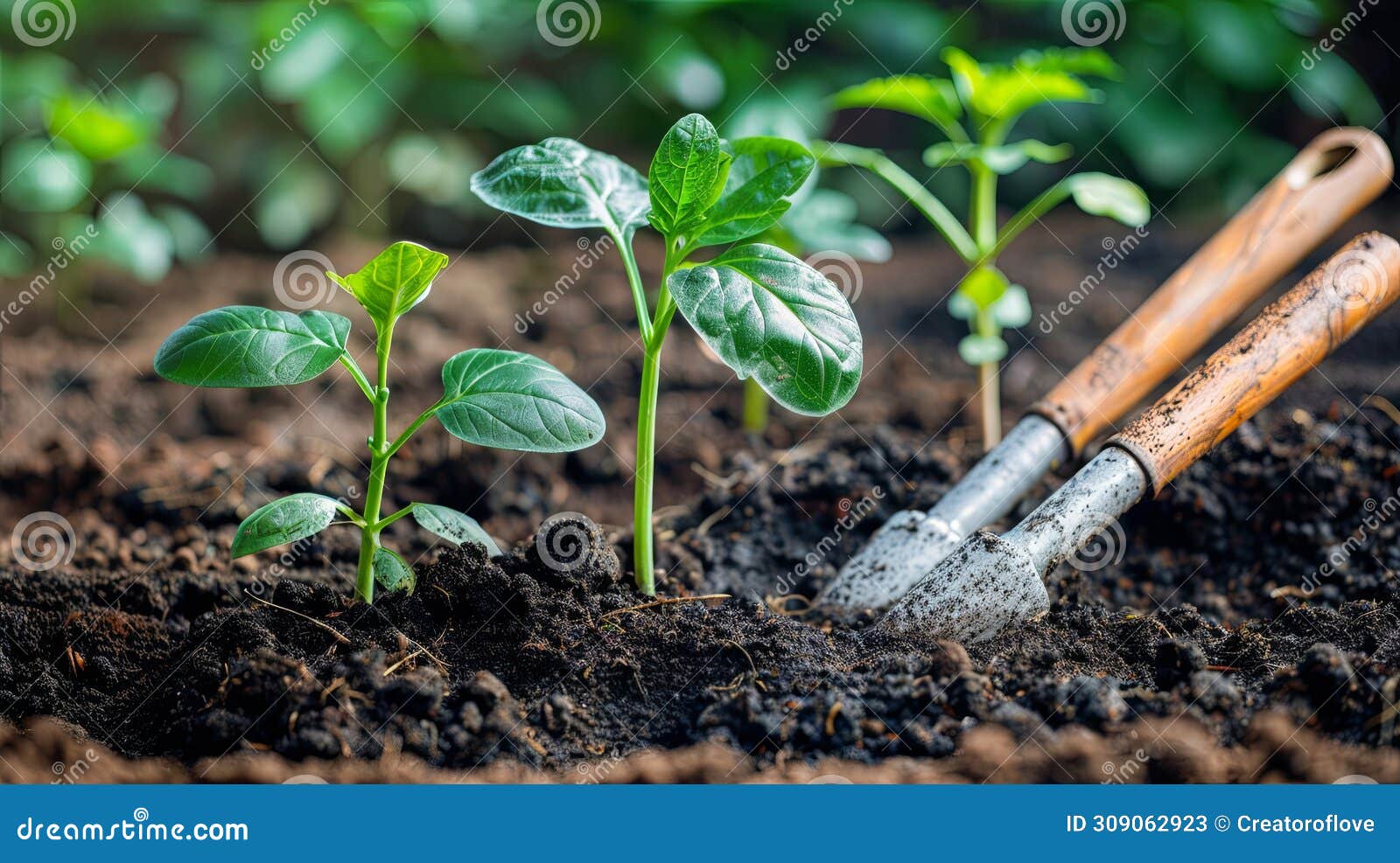 The Seedlings of Plants Planted in the Soil Stock Photo Image of