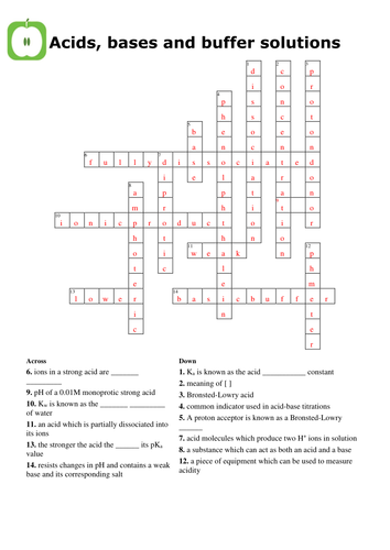 Chemistry: Acids bases and buffers crossword by greenAPL Teaching