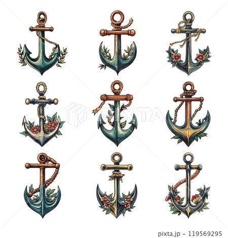 Anchors set Metallic anchor sea transportation のイラスト素材 119569295