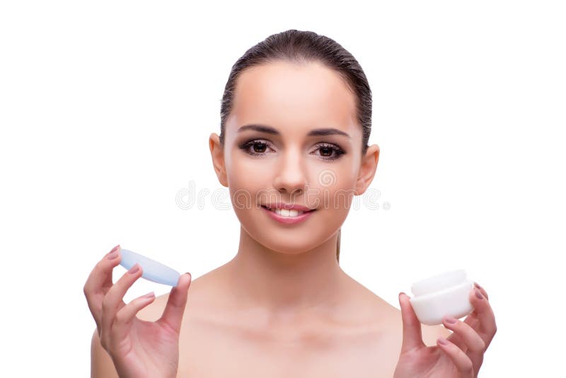 The Young Woman with Cream Isolated on White Stock Image Image of