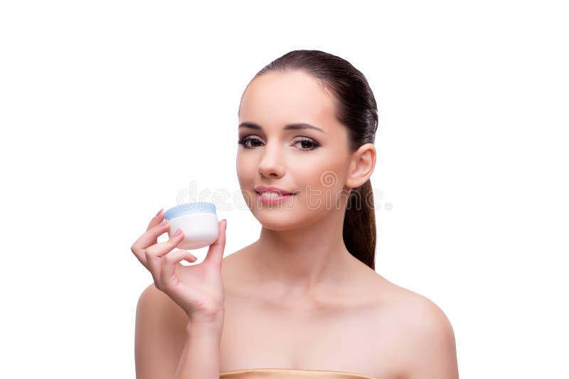 The Young Woman with Cream Isolated on White Stock Photo Image of