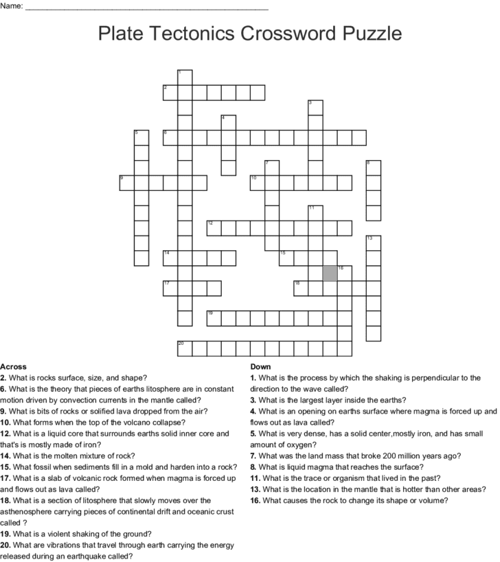 Plate Tectonics Crossword Puzzle Answer News Puzzle Tips and Tutorial