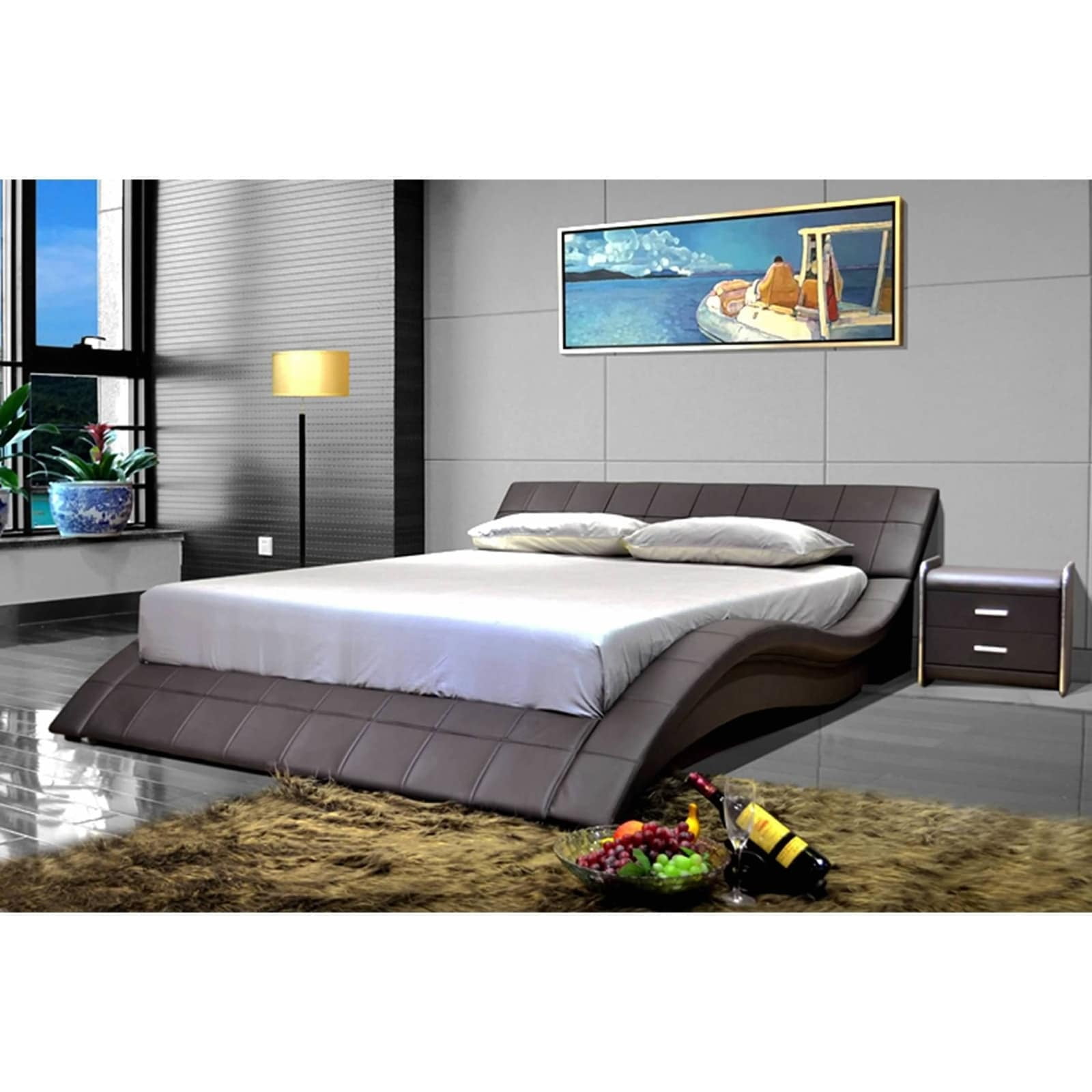 Greatime B1041 1 Wave like Shape Upholstered Modern Platform Bed Brown