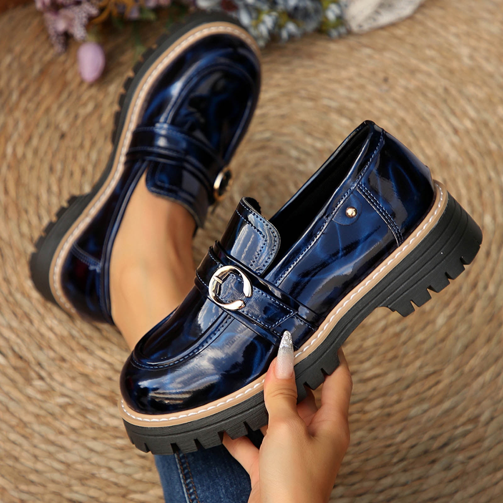 HaiMao Women #39 s Chunky Platform Loafers with Buckle Leather Penny