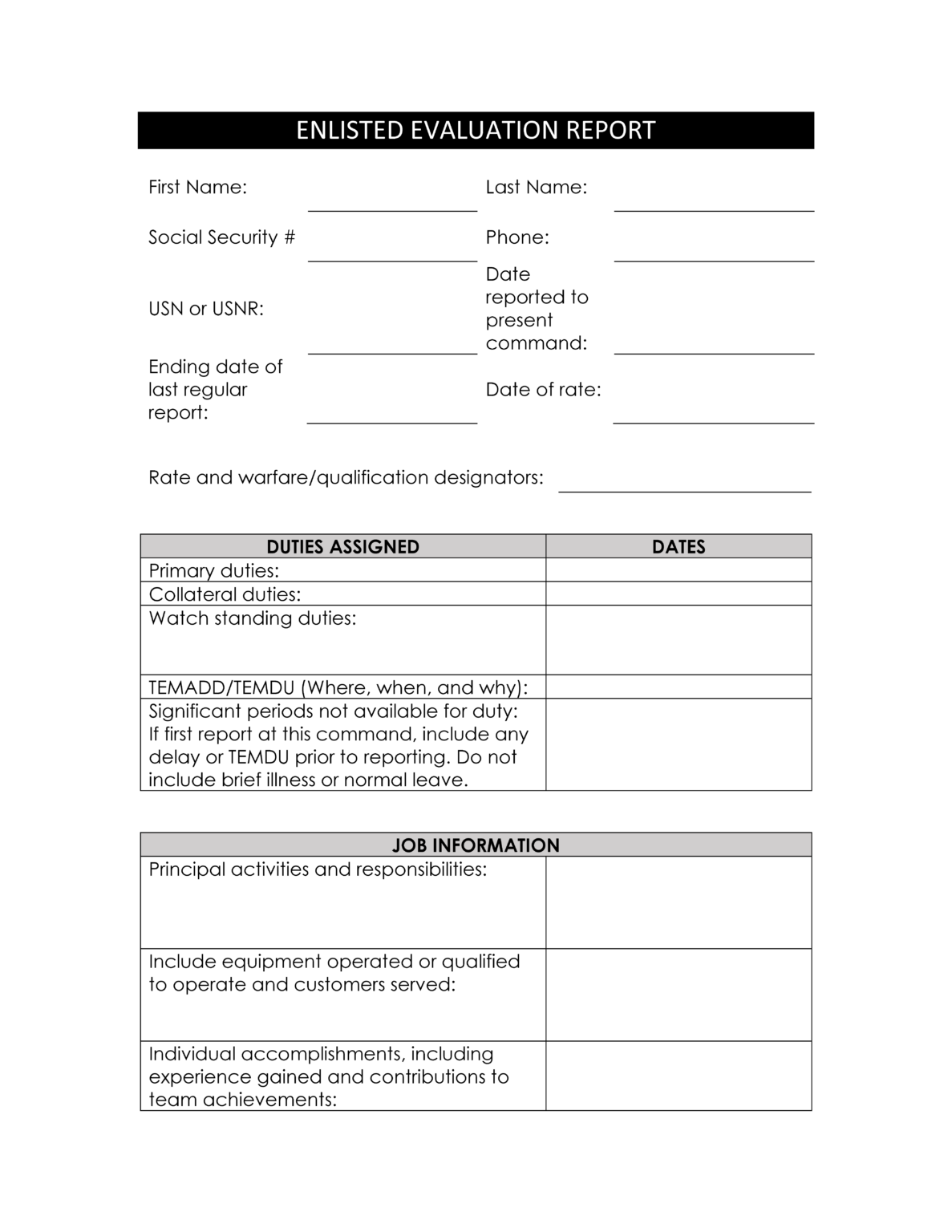 Navy Eval Brag Sheet Template