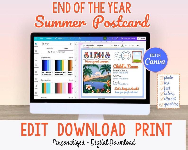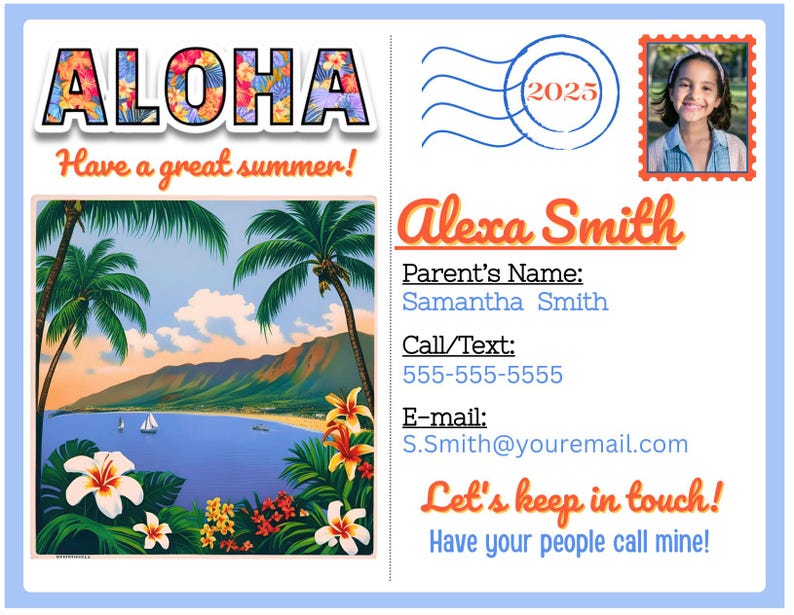 Summer Postcard Customizable Kids Printable Play Date Card Summer