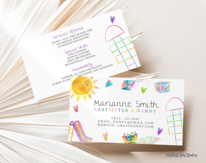 Babysitter Business Cards Playground Summer Play Date Card Printable