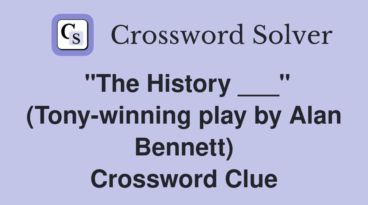 quot The History quot (Tony winning play by Alan Bennett) Crossword Clue