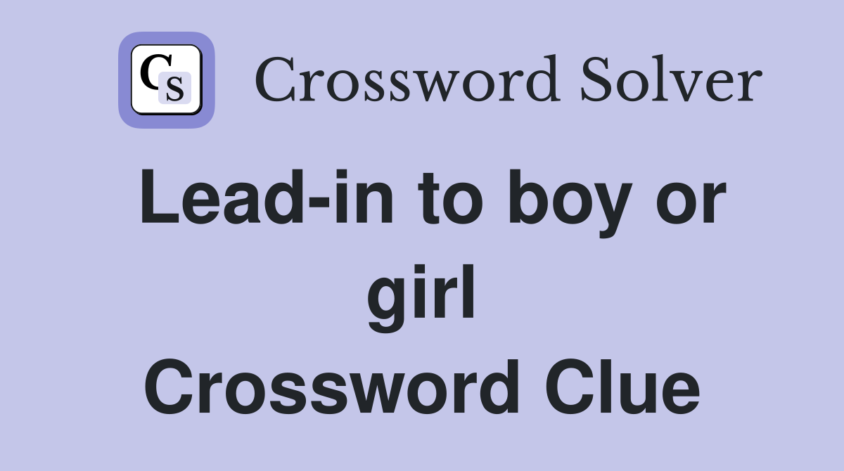 Lead in to boy or girl Crossword Clue Answers Crossword Solver