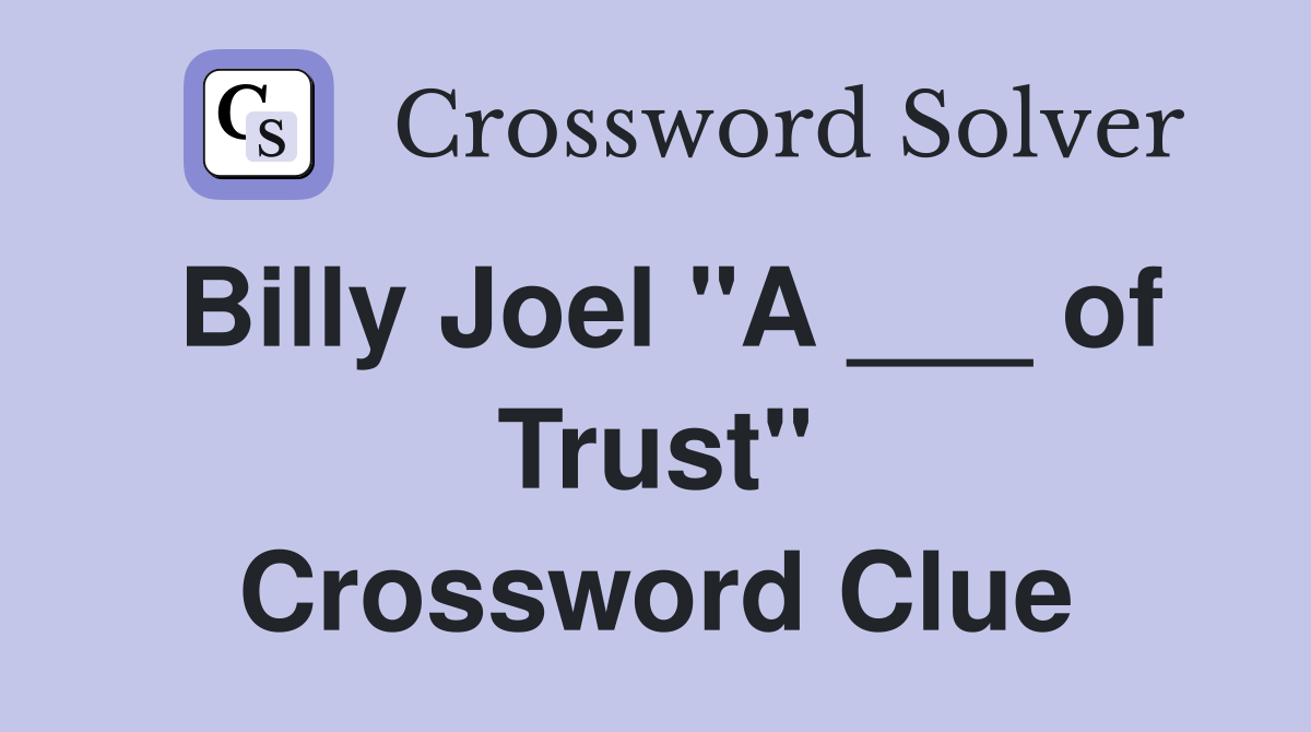 Billy Joel quot A of Trust quot Crossword Clue Answers Crossword Solver