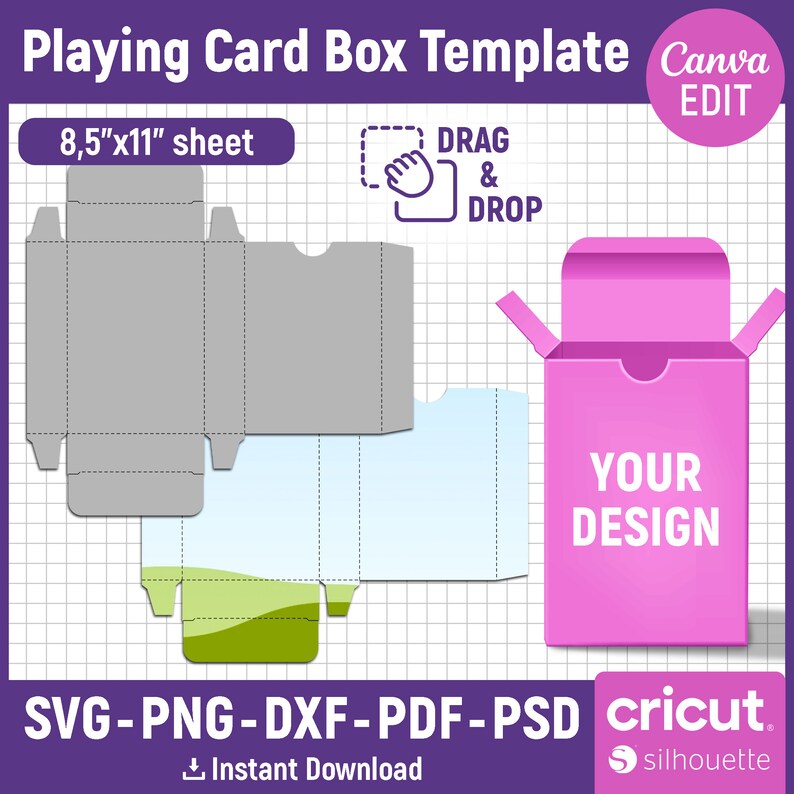 Drag and Drop Playing Cards Box Template Custom Blank Tuck Box