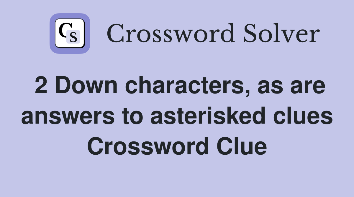 2 Down characters as are answers to asterisked clues Crossword Clue