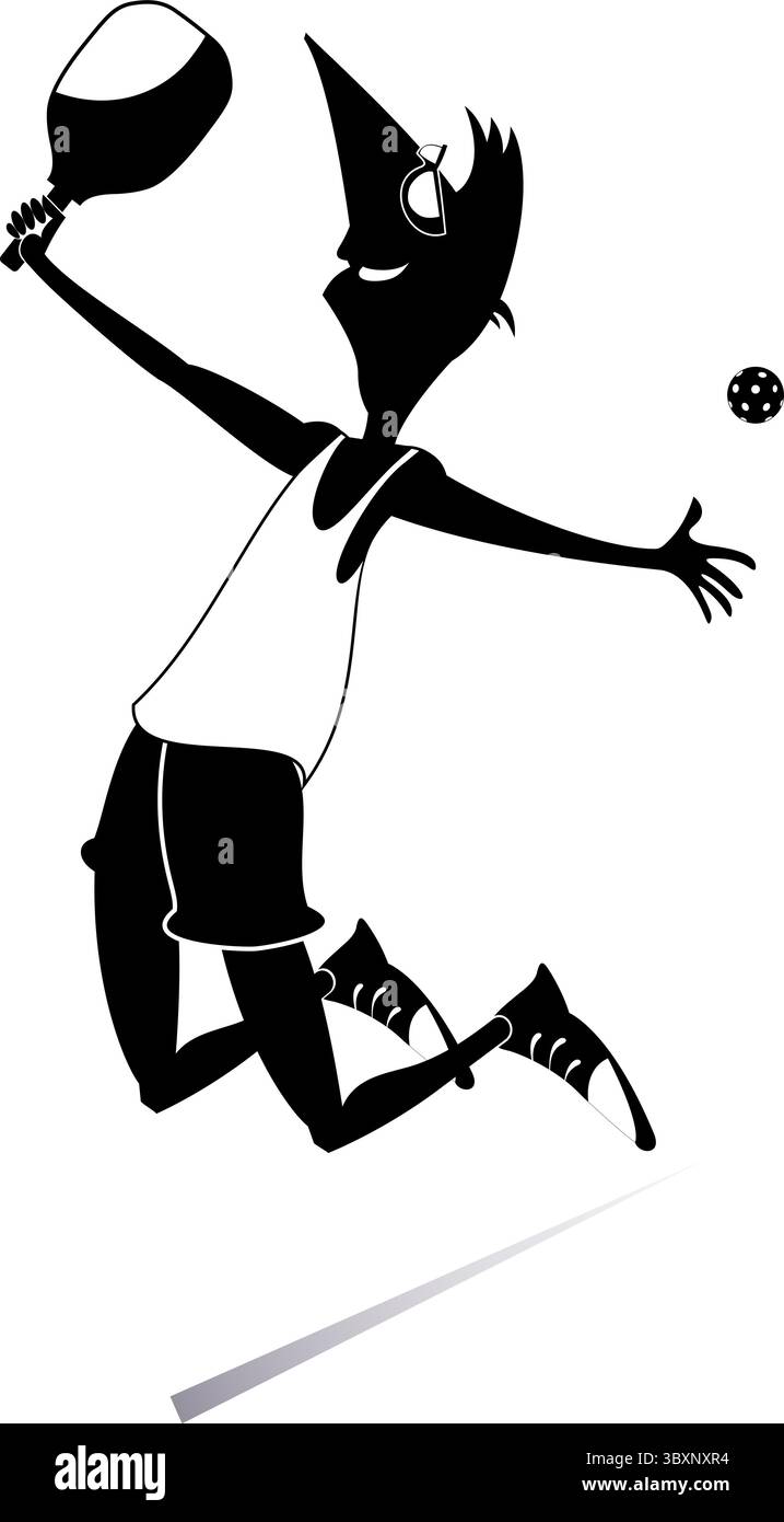 Happy young man playing pickleball Tennis court Jumping man with