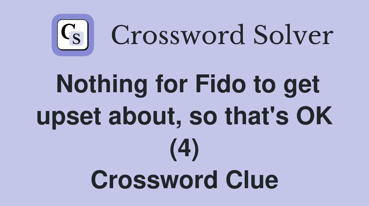 Nothing for Fido to get upset about so that s OK (4) Crossword Clue