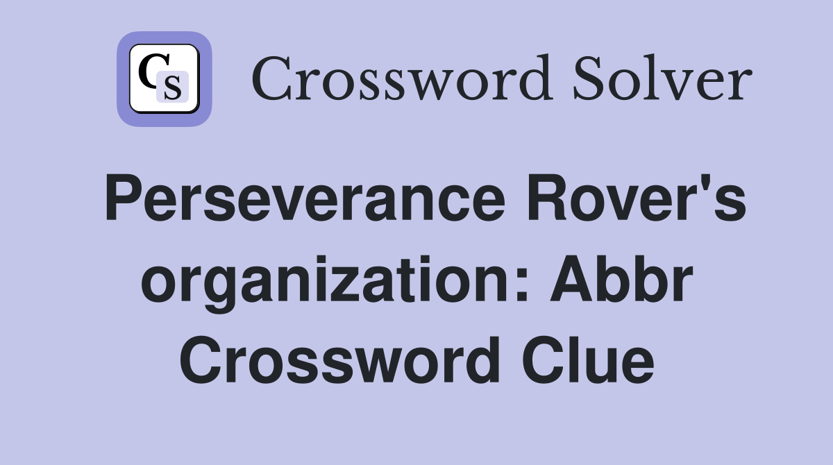 Perseverance Rover s organization: Abbr Crossword Clue Answers