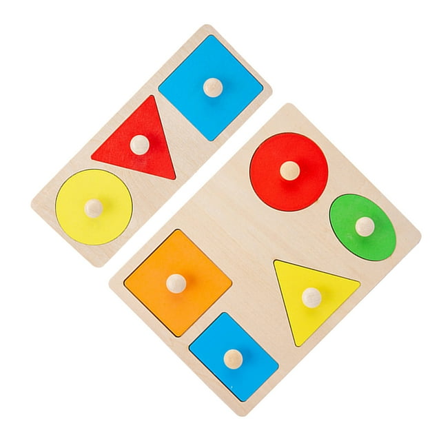 2 Sets of Wooden Shape Puzzle Geometric Shape Puzzle Toy Kids Learning