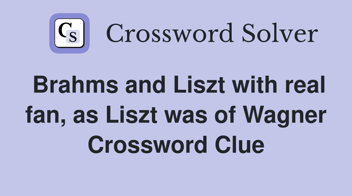 Brahms and Liszt with real fan as Liszt was of Wagner Crossword Clue