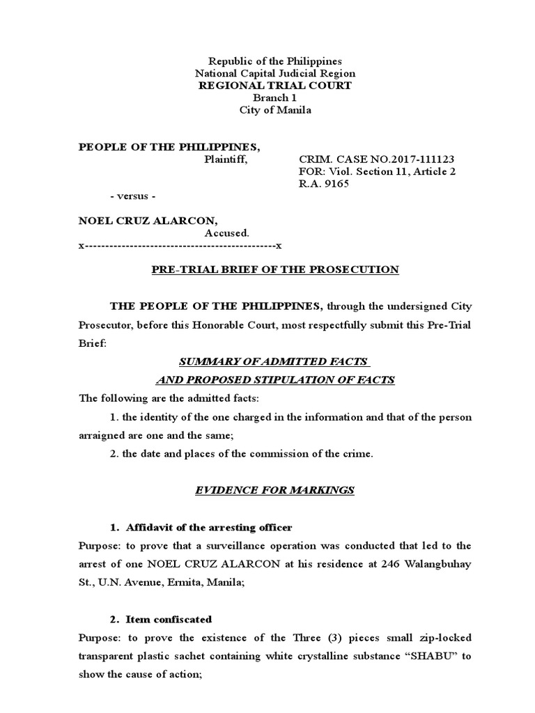 Pre trial Brief of Prosecution Prosecutor Arrest