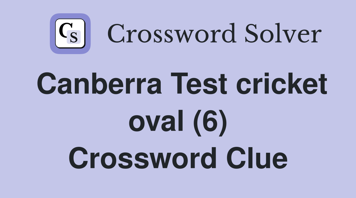 Canberra Test cricket oval (6) Crossword Clue Answers Crossword Solver
