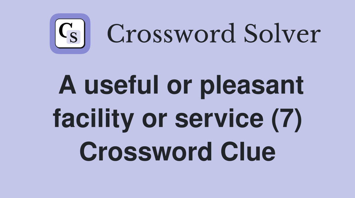 A useful or pleasant facility or service (7) Crossword Clue Answers