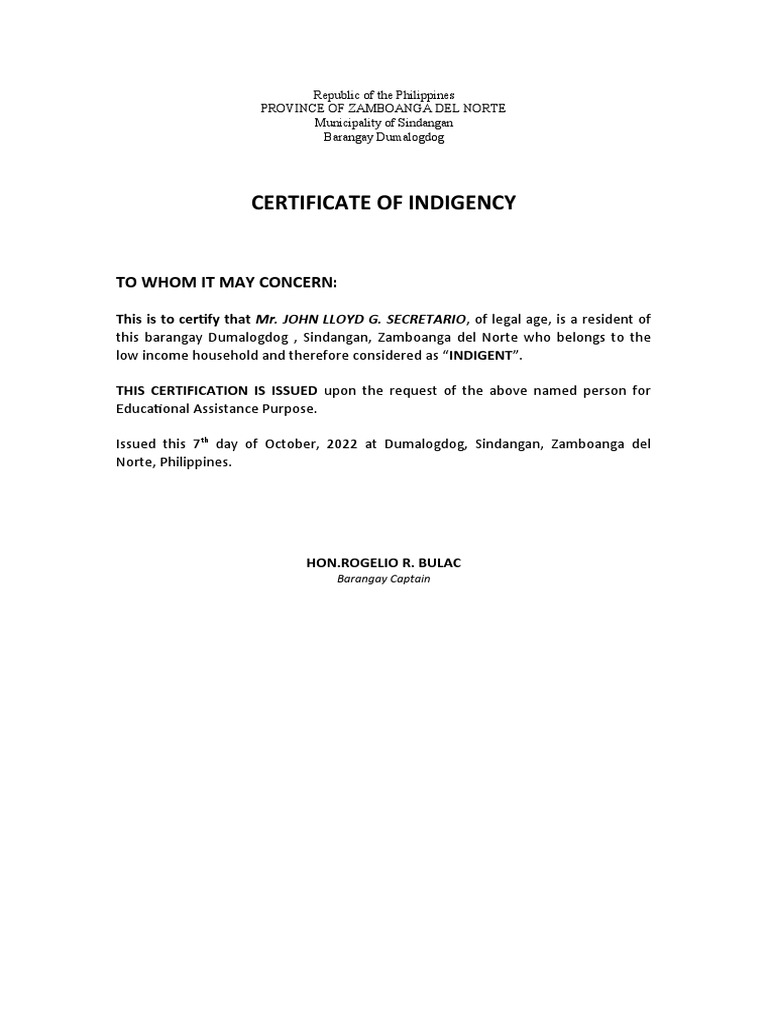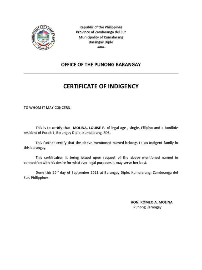 Certificate Of Indigency prntbl concejomunicipaldechinu gov co