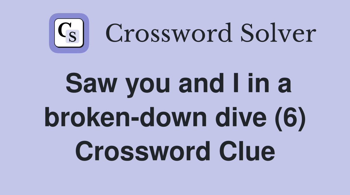 Saw you and I in a broken down dive (6) Crossword Clue Answers