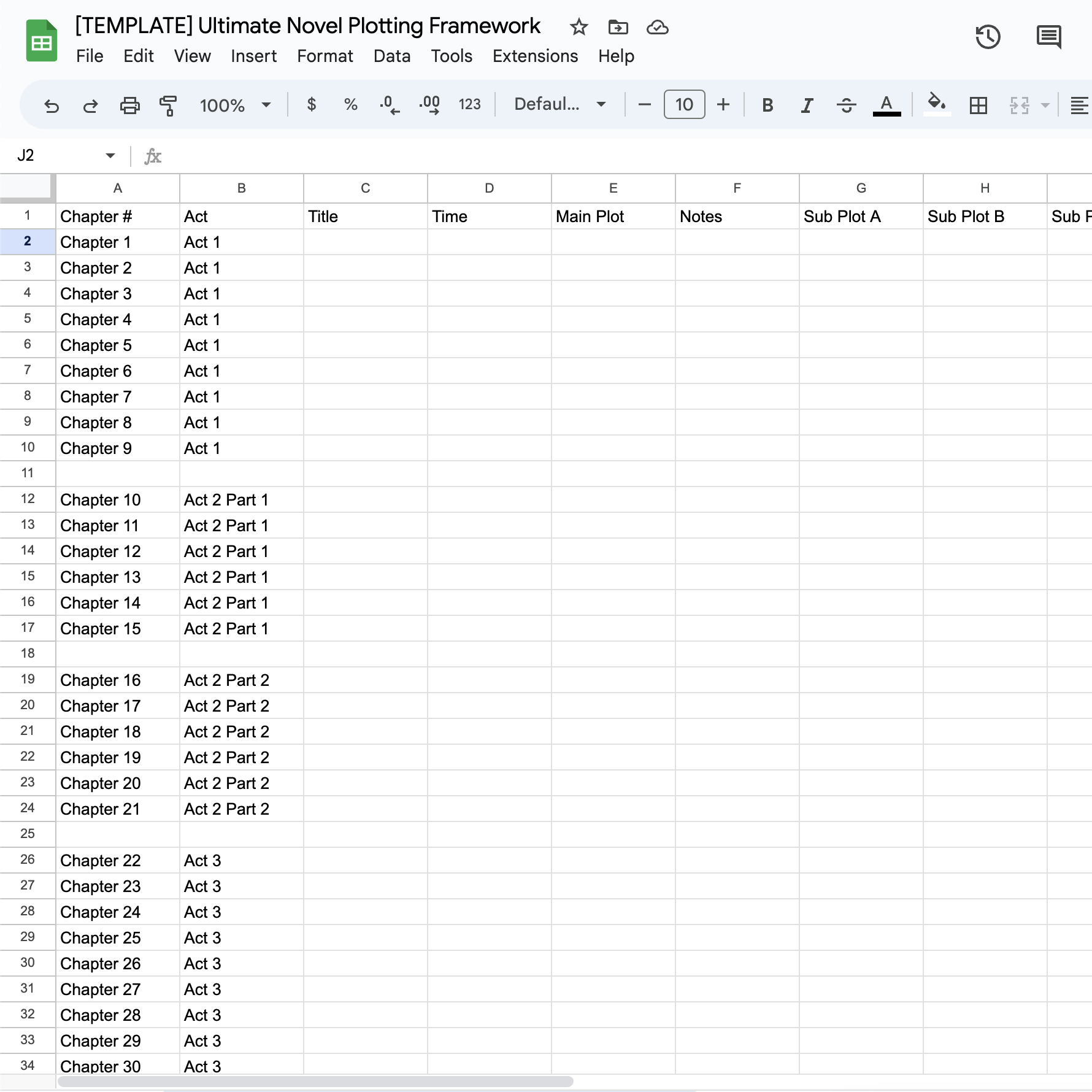 Novel Plotting Sheet and Guide Story Mapping Spreadsheet Character