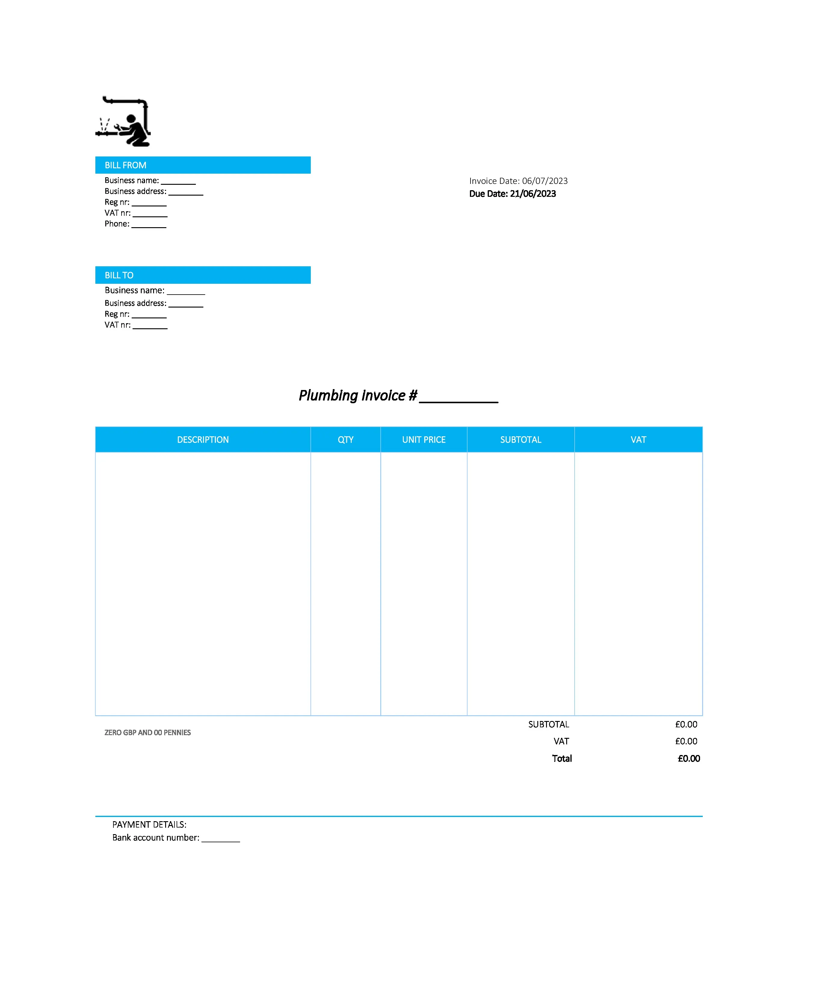 Printable Plumbing Invoice Template