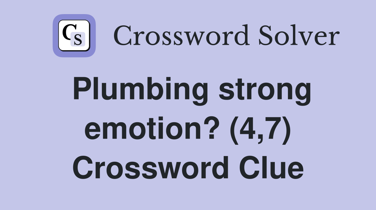 Plumbing strong emotion? (4 7) Crossword Clue Answers Crossword Solver
