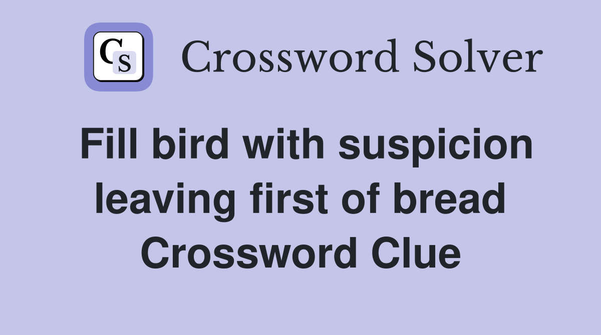 Fill bird with suspicion leaving first of bread Crossword Clue