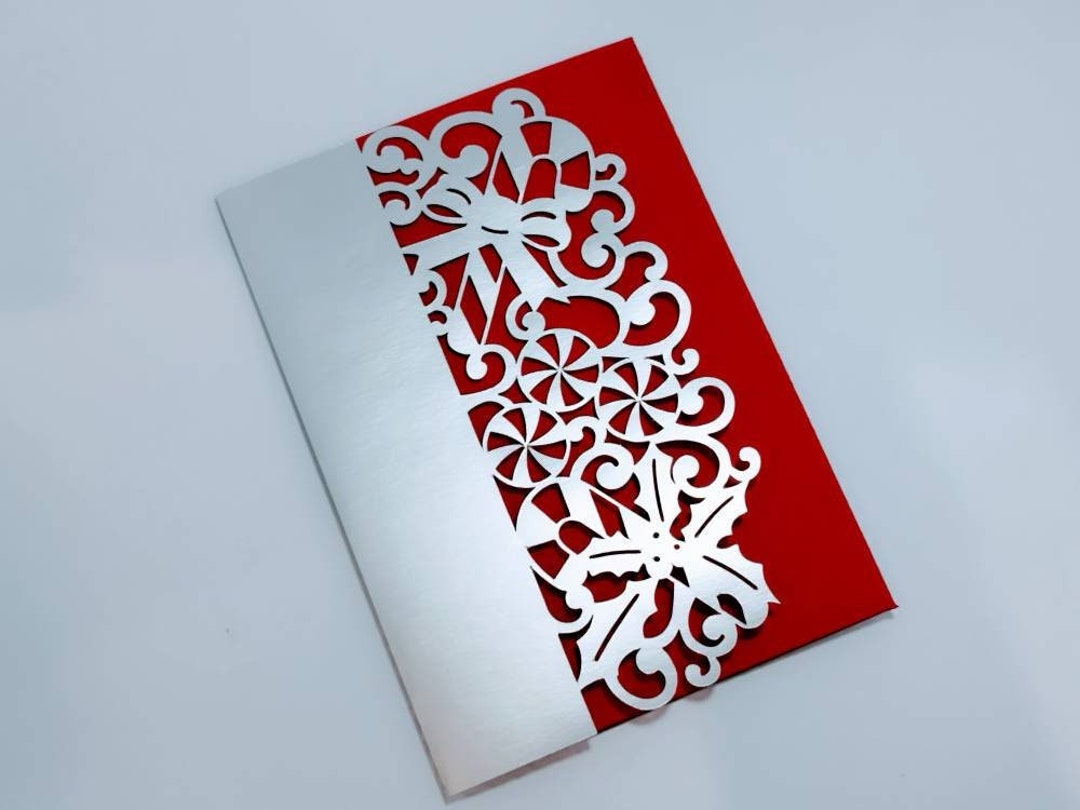 SVG Tri Fold Pocket Card Template 5x7 in Christmas Card Candy Cane