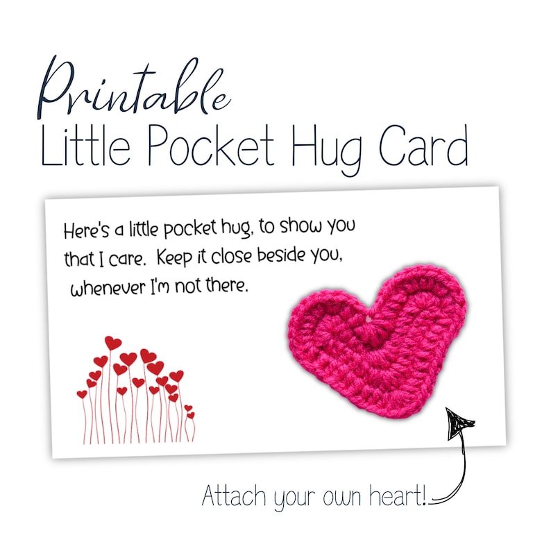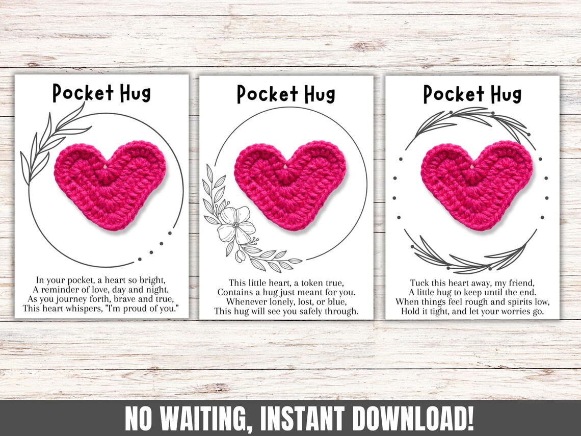 Pocket Hug Crochet Card Printable Crochet Pocket Hug Template Poem