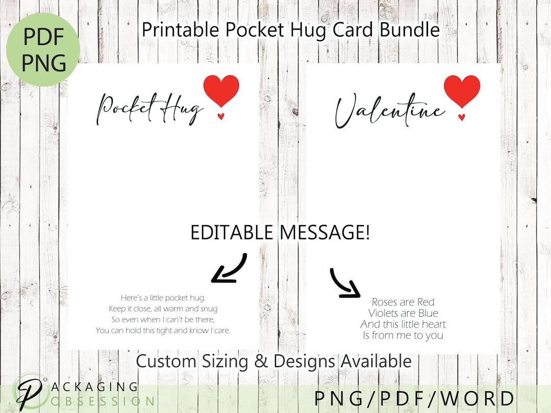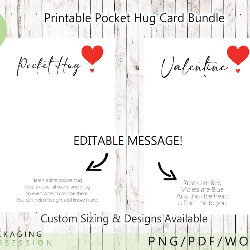 Pocket Hug Card Printable Custom Display Cards PDF Printed Backing