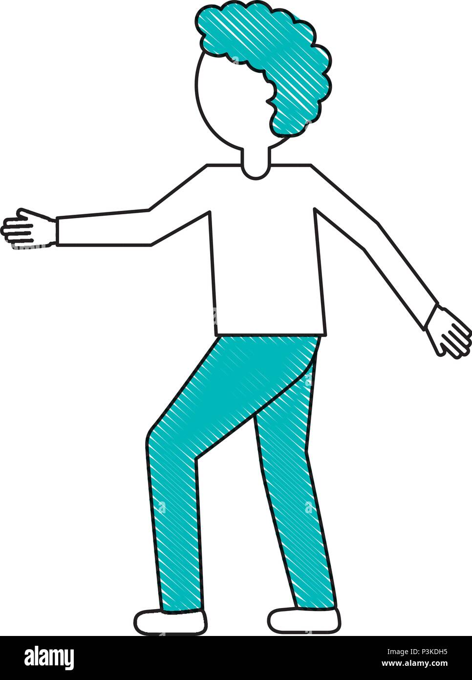 Man Dancing And Smiling Cartoon Blue Lines Stock Vector Illustration
