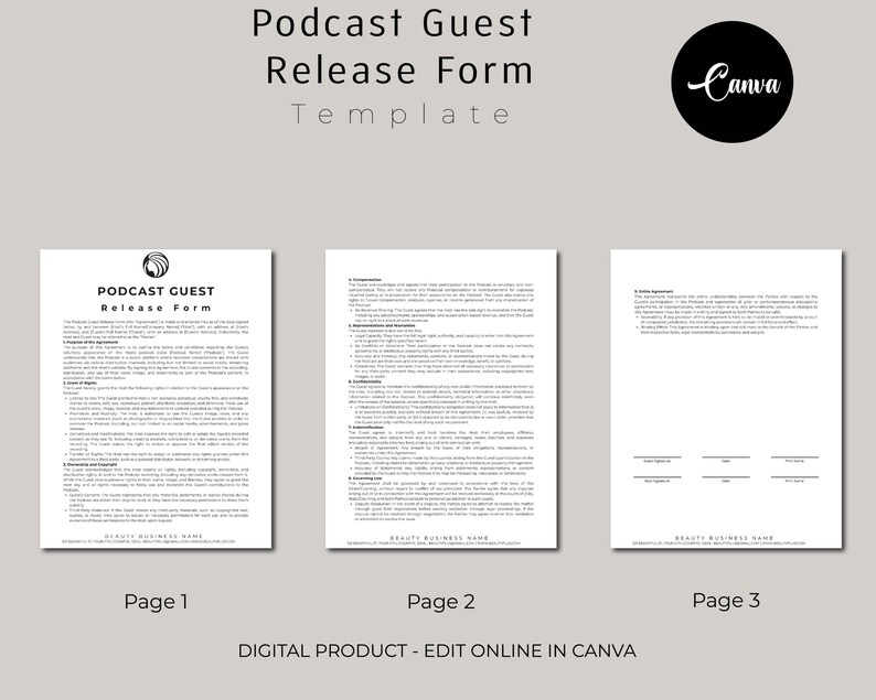 Podcast Guest Release Form template PDF Etsy