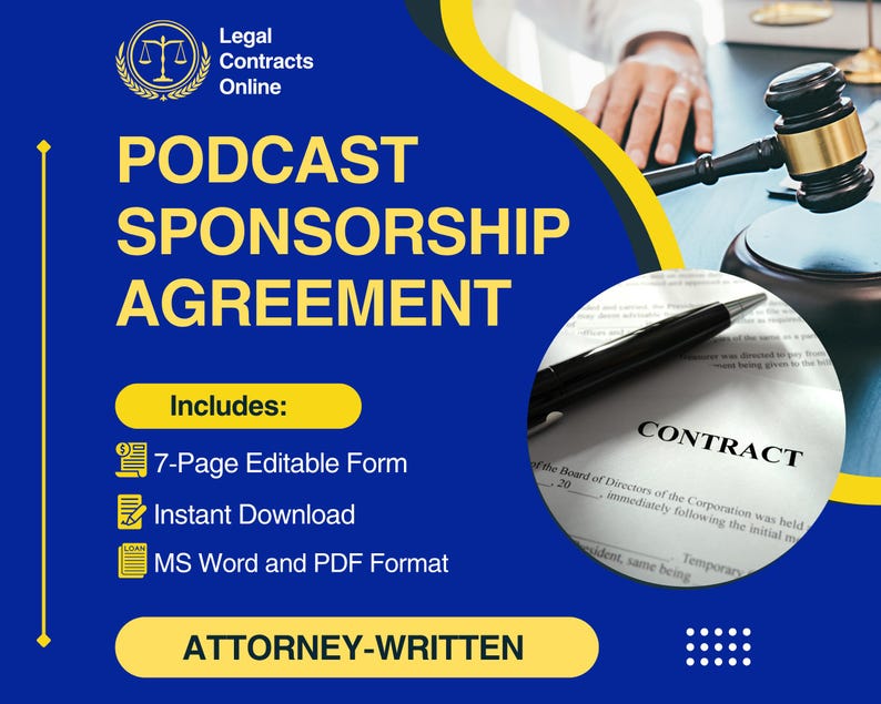 Podcast Sponsorship Agreement Template: Attorney drafted Legal Contract