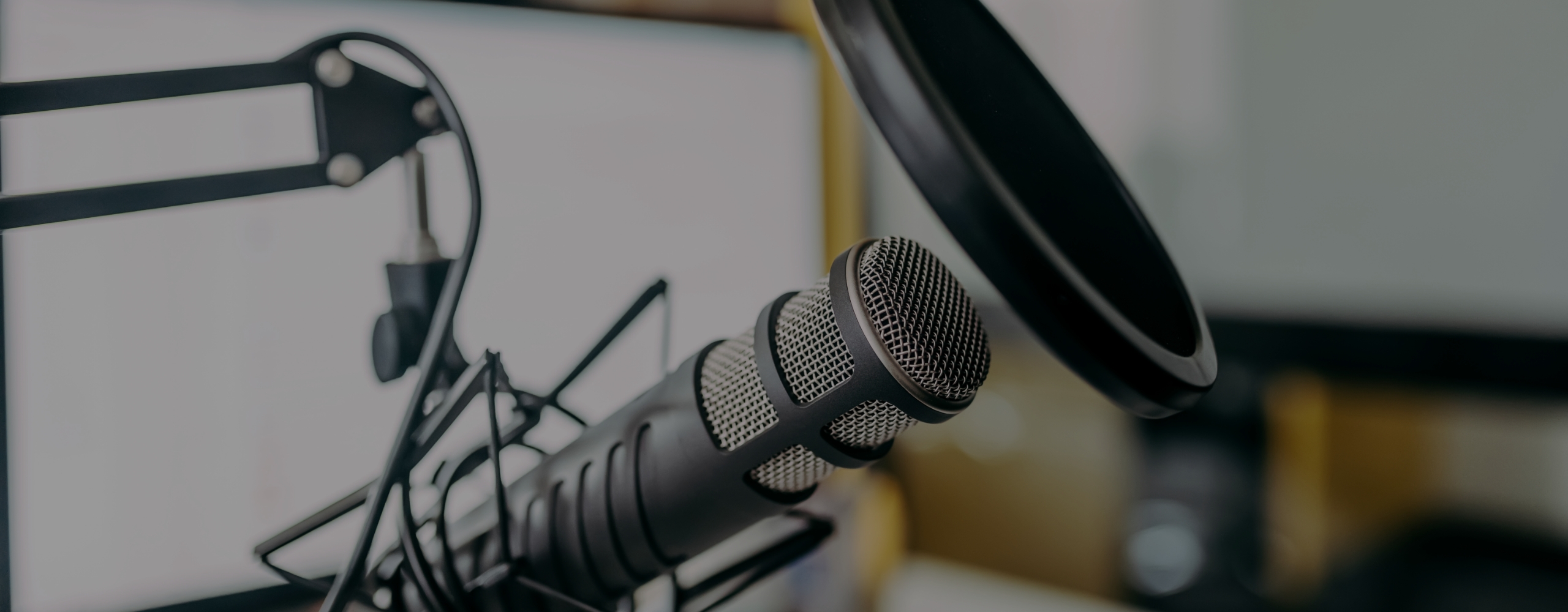 Premium Photo Shot Studio podcast microphone on dark background