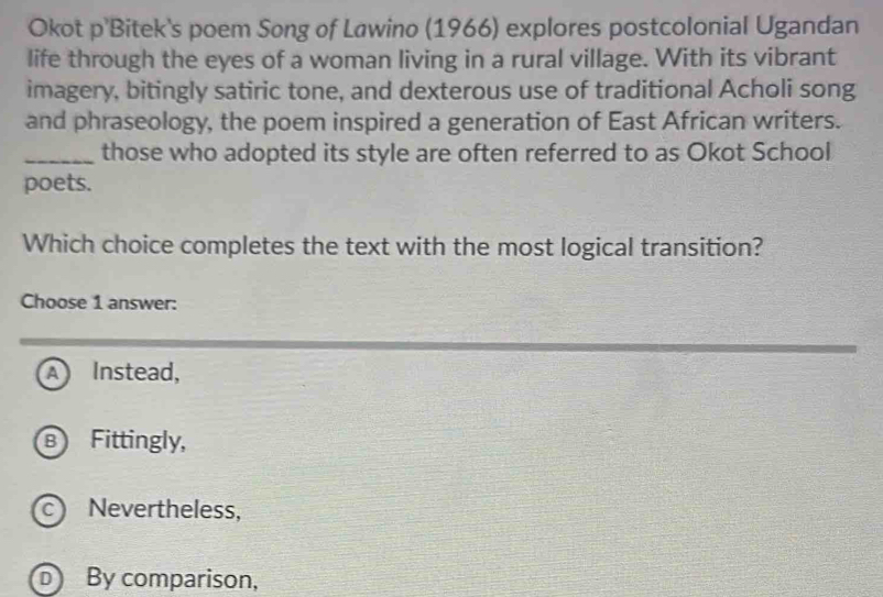 Solved: Okot p #39 Bitek #39 s poem Song of Lawino (1966) explores postcolonial