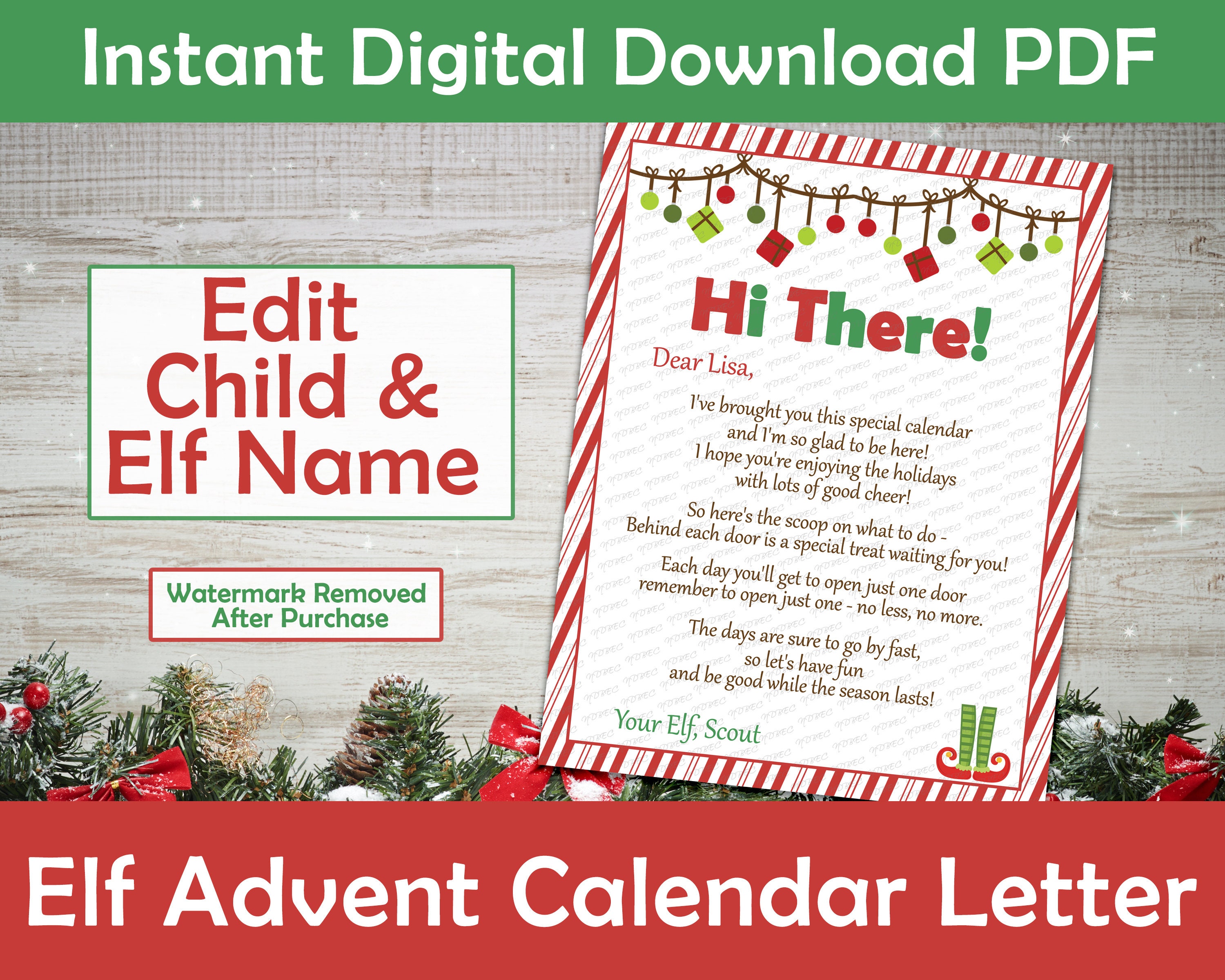 Editable Elf Advent Calendar Poem Digital Download Printable PDF Elf