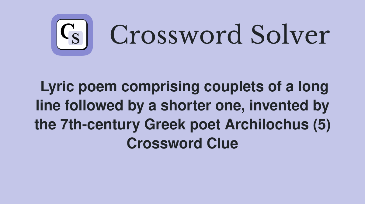 Lyric poem comprising couplets of a long line followed by a shorter one