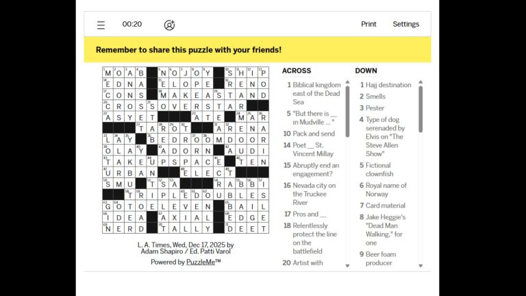 LA Times Crossword and Mini Crossword Solutions for Today (December 17