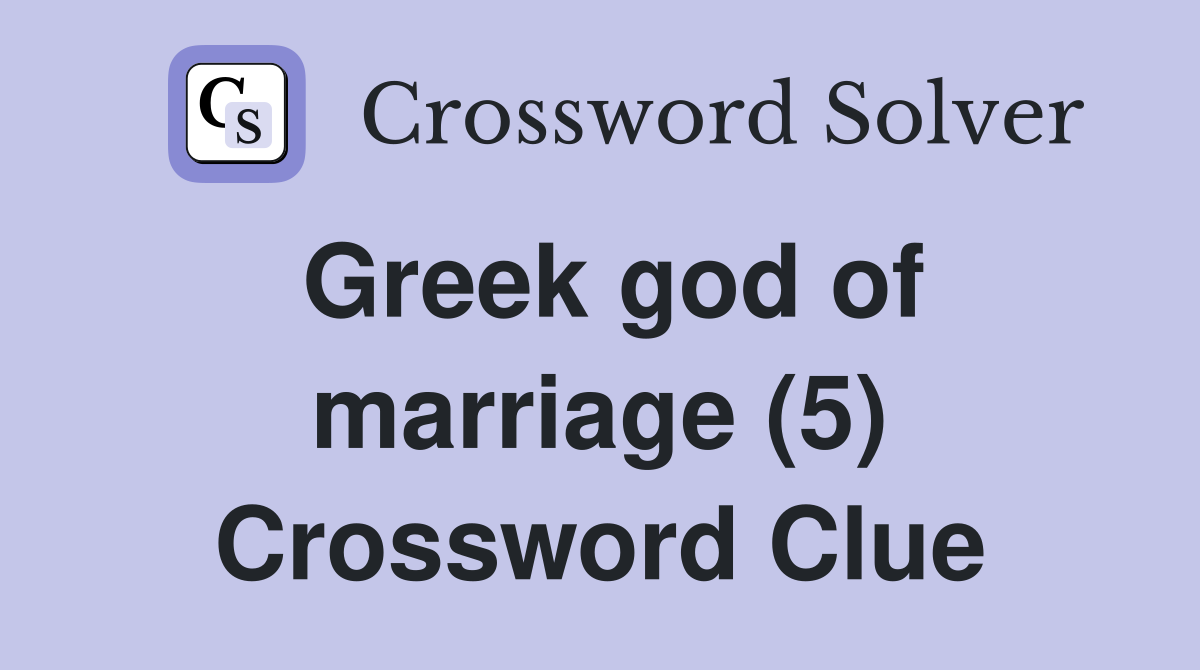 Greek god of marriage (5) Crossword Clue Answers Crossword Solver