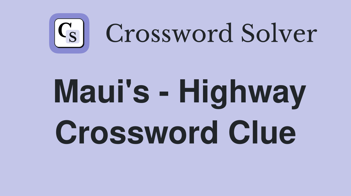 Maui #39 s Highway Crossword Clue Answers Crossword Solver