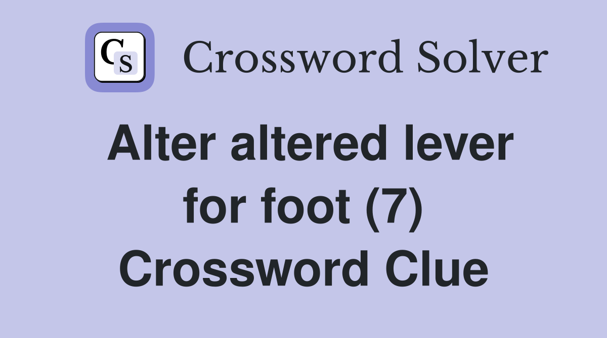 Alter altered lever for foot (7) Crossword Clue Answers Crossword