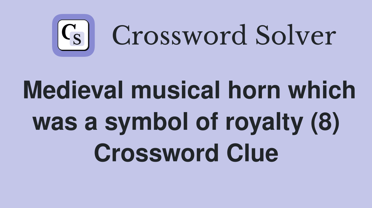 Medieval musical horn which was a symbol of royalty (8) Crossword