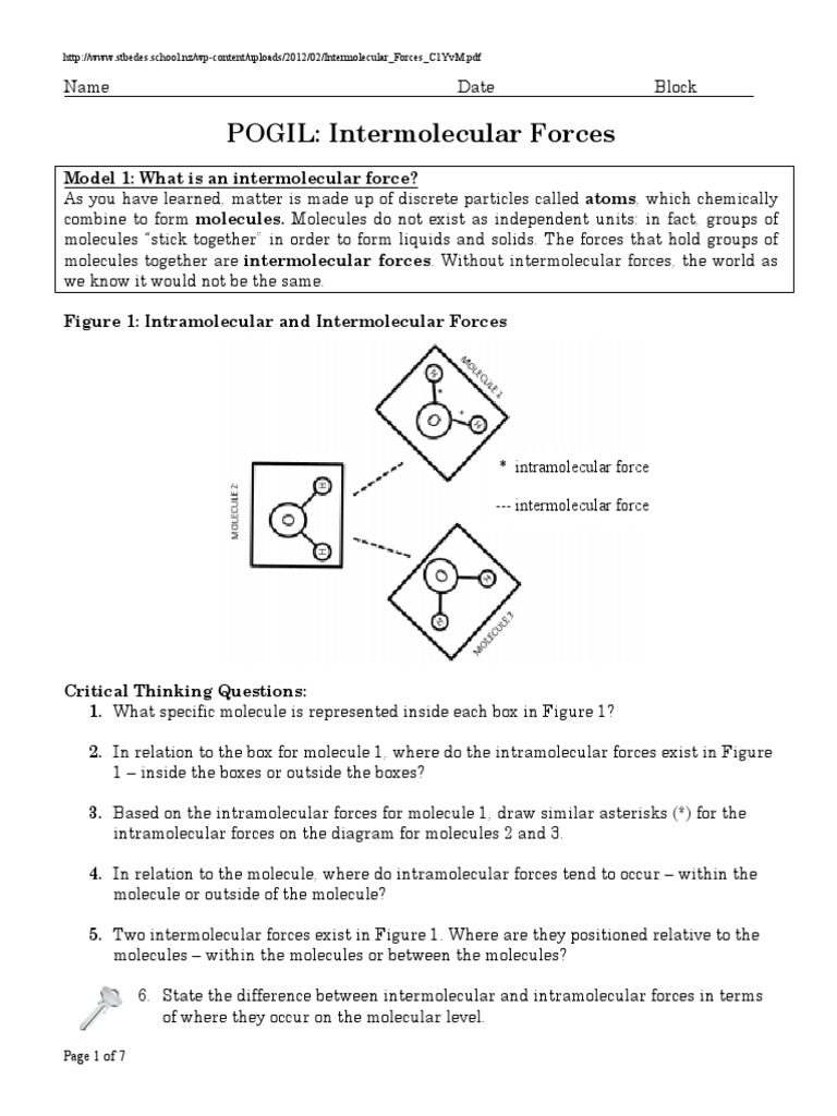 Intermolecular Forces POGIL 1 PDF Intermolecular Force Chemical