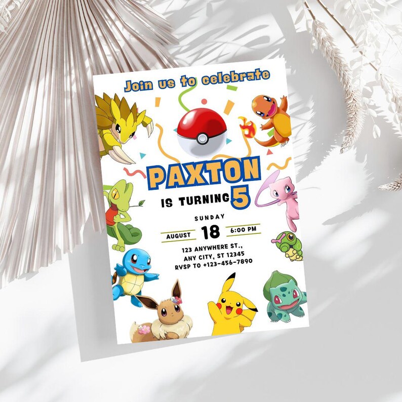 Pokemon Theme Birthday Invitation Card Printable Cards