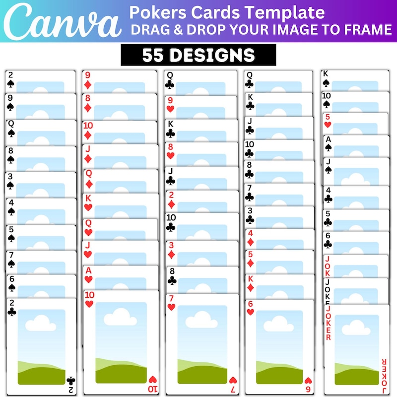 Blank Playing Editable Canva Template Poker Card Template Easy Drag