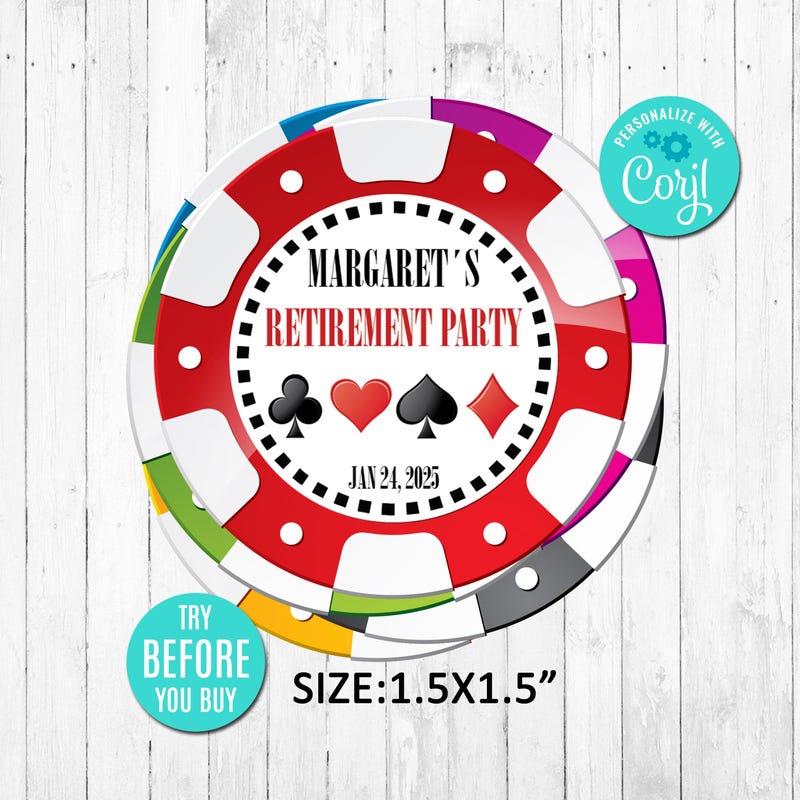 EDITABLE Casino Poker Chip Sticker Template Casino Theme Retirement