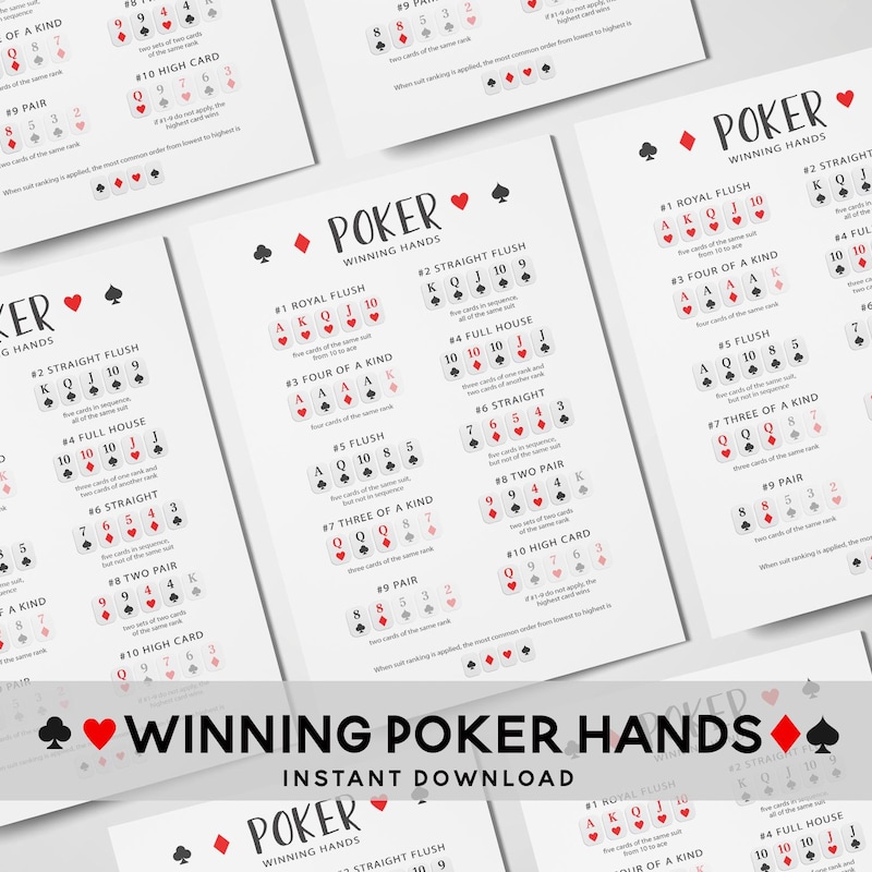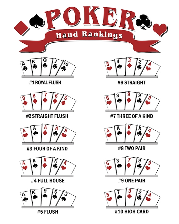 Poker Hand Ranking Poster Instant Digital Download Perfect Etsy